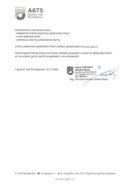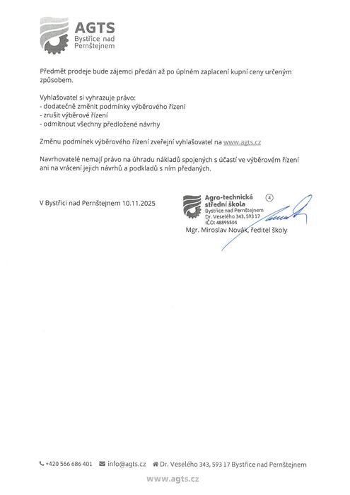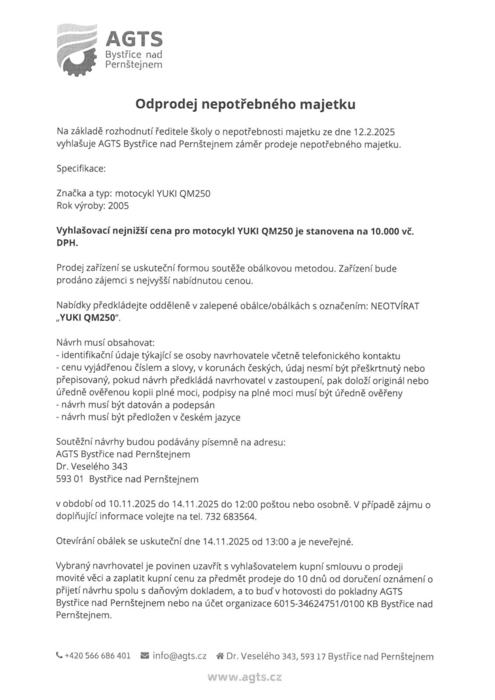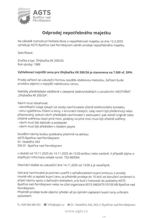 Úvod > Škola > Aktuality > AGTS Bystřice nad Pernštejnem nabízí k odprodeji nepotřebný majetek 11-2025