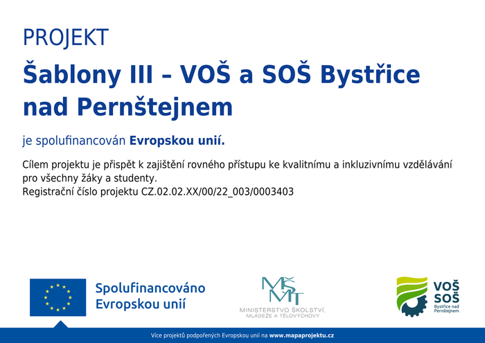 Název projektu: Šablony III – VOŠ a SOŠ Bystřice nad Pernštejnem